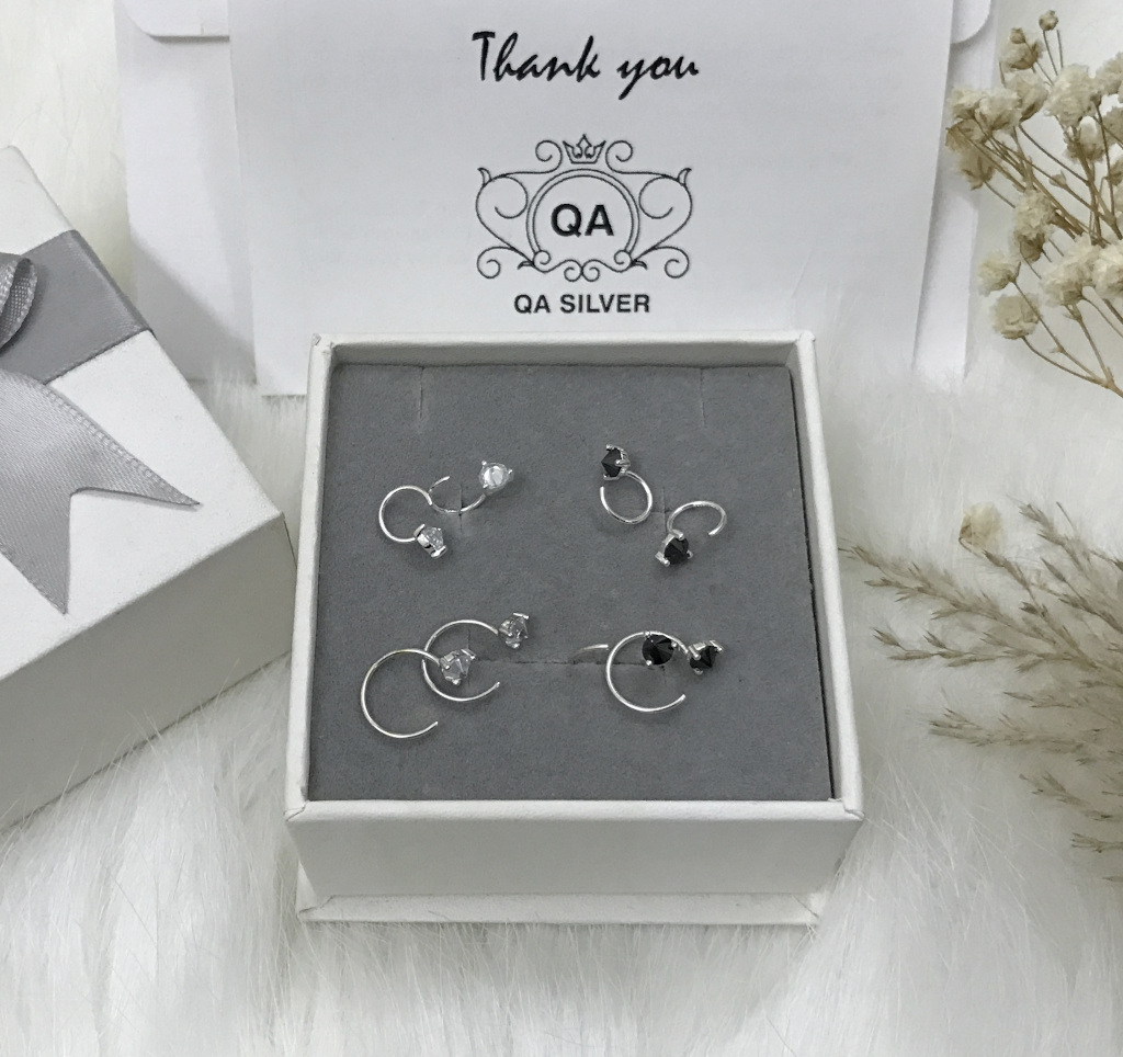 Ảnh cuối Khách nhà em feeback #EARCUFF Khuyên tai bạc kẹp vành đính đá ạ <3 Trên ảnh là khuyên sz 9mm 2 màu đá đen và trắng cả nhà nhé ^^ Thank bạn nhiều ạ <3