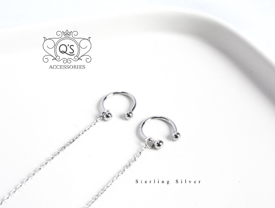 EARCUFF Khuyên tai bạc kẹp vành phối dây xích cách điệu S925