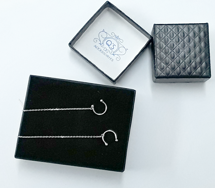 Khuyên có phần cuff kẹp vào vành và thân xích xuyên lỗ tai dưới. Có rất nhiều cách xỏ đẹp và lạ tùy các nàng ngẫu hứng ạ ^^.